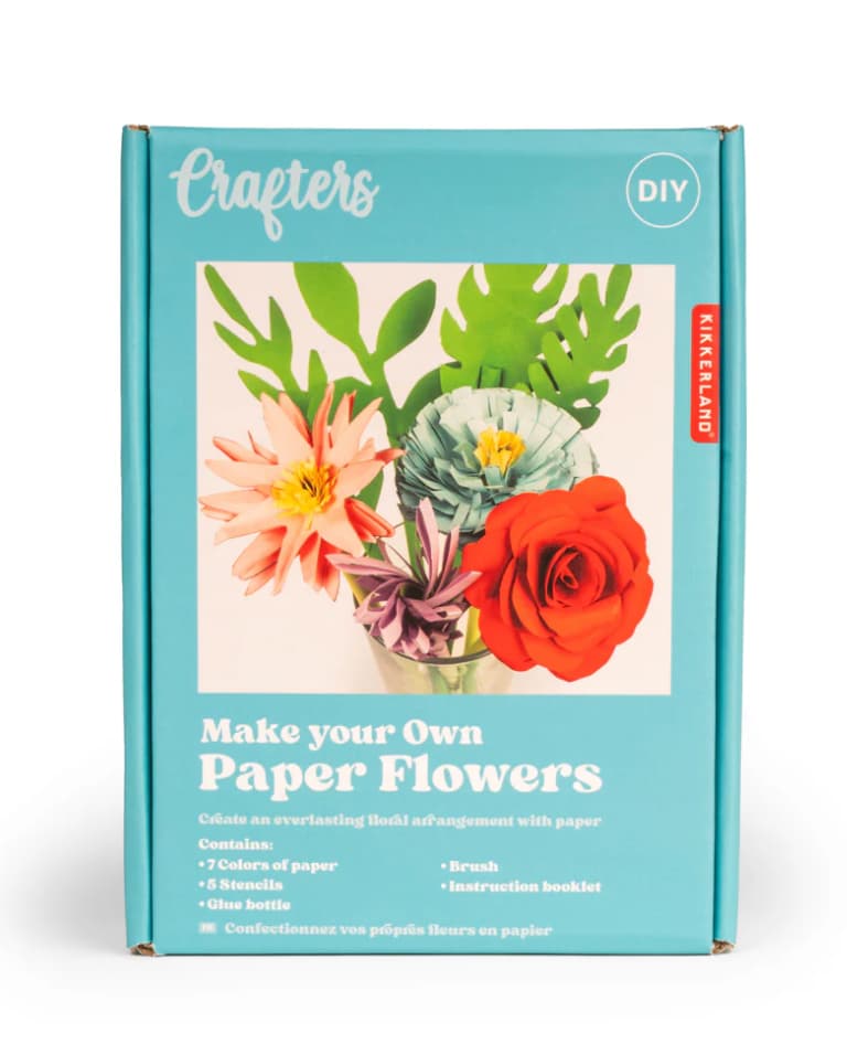 Crafters is a collection that responds to people’s desire for handmade products and the need to get away from screens, at least for a while. For this collection, we have designed kits to get started in screen printing or lettering, as well as easy crafts to make a bouquet of paper or paper decorated with flowers.